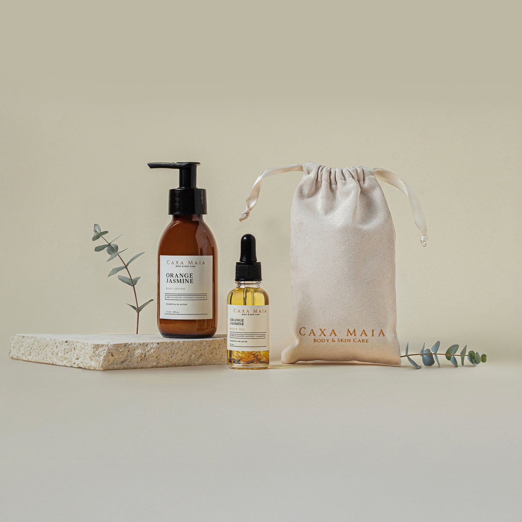 Crema orange jasmine: Agua, extracto órganico de hammamelis, aloe vera, glicerina vegetal, vitamina E,aceite de uva y aceite de almendras.